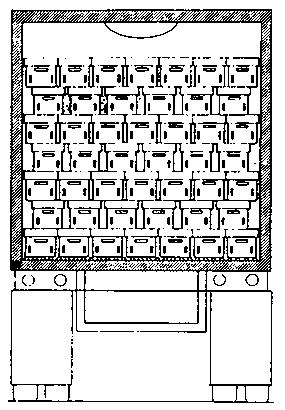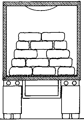 Seule la charge au fond à droite est tout à fait protégée du transfert de chaleur. L'emploi de palettes tient les cartons éloignés du plancher tandis que le chargement central laisse un espace d'isolation entre les palettes et les murs extérieurs.