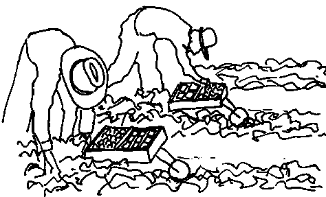 Una pequeña carretilla puede ayudar a reducir las veces que los recolectores han de agacharse y levantarse durante la cosecha. Las carretillas ilustradas a continuación tienen una sola rueda frontal y pueden ser empujadas a lo largo de los surcos por el mismo cosechador.