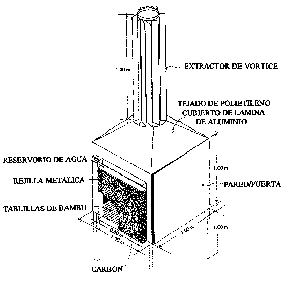 Fuente: Thompson, J. F and Kasmire, R.F. 1981. An evaporative cooler for vegetable crops. California Agriculture, March-April: 20-21.