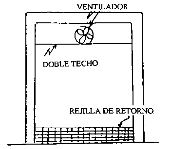Detalle de un refrigerador de hielo: vista posterior - un motor de ventilación eléctrico se monta normalmente en el interior de la cámara fría, la capacidad del ventilador (pies cúbicos/minuto) debería ser como mínimo igual al volumen de la cámara vacía