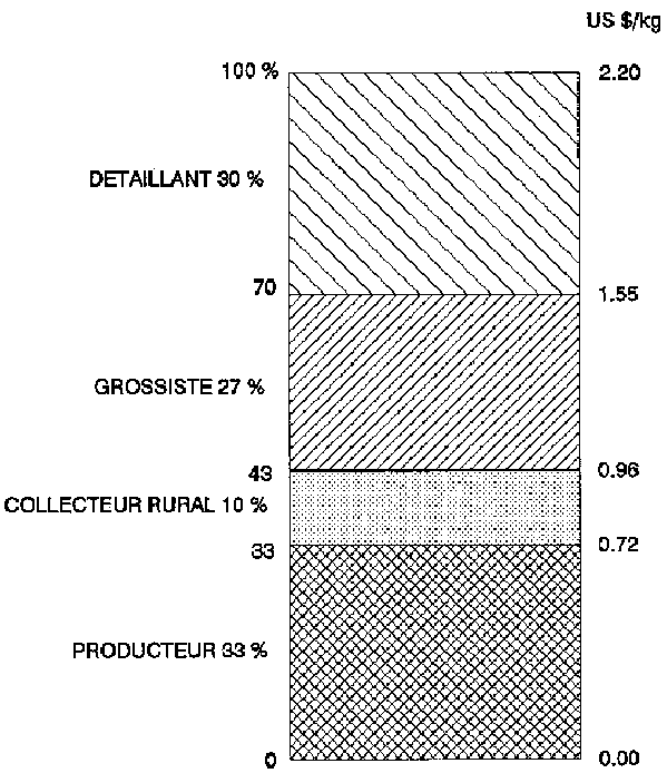 Marges de commercialisation pour les mangues Julie, St. Lucia, juillet 1988.