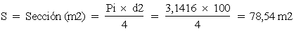 Tonelaje = S x h x PH = 78,54 m2 x 12 m x 0,8 t/m3 = 754 t