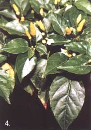 Arbuste de petite taille à feuilles vert foncé souples de formes variées et à fleurs jaunes |