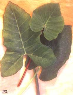 Les feuilles de bien des plantes appréciées pour leurs qualités ornementales ou autres sont comestibles. C'est le cas du taro, de la patate douce, du manioc, des pousses de citrouille et du piment. Souvent, ces feuilles sont beaucoup plus nourrissantes que la partie principale de la plante. Toutefois, en enlevant à cette plante un trop grand nombre de feuilles, on risque d'en entraver la croissance. Il vaut mieux parfois cultiver deux parcelles différentes - l'une pour les feuilles et l'autre pour la plante elle-même.