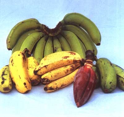 Le bananier appartient à la famille des Musacées. Il y a de nombreuses variétés de bananes qui diffèrent les unes des autres par leur saveur et leur aspect, mais elles se divisent en deux grandes catégories: