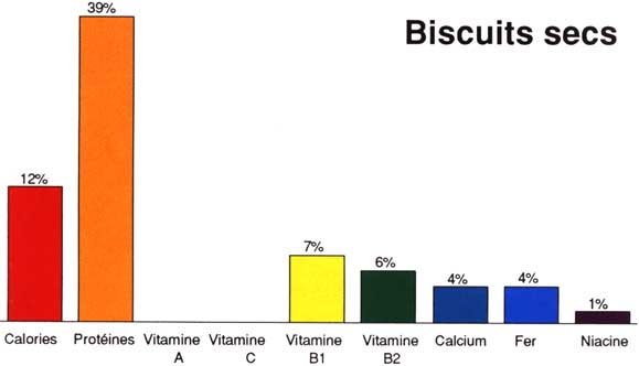 Pourcentage des besoins quotidiens d'une femme adulte satisfait par 4 biscuits