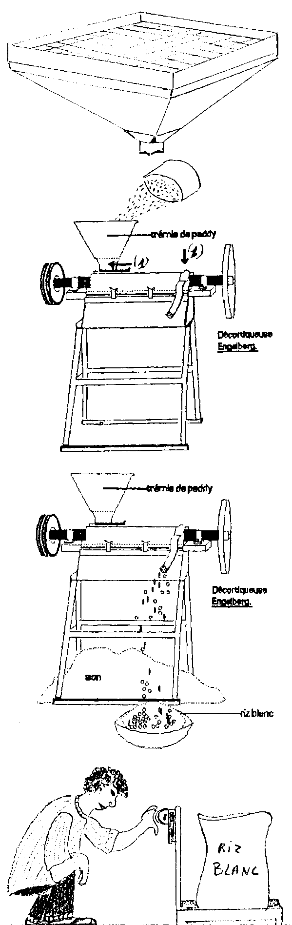 · quand le paddy arrivera à la décortiqueuse, il se brisera en morçeaux et en farine de riz dans la machine,· le transformateur aura plus de SON et de FARINE DE RIZ mais moins de riz blanc,
