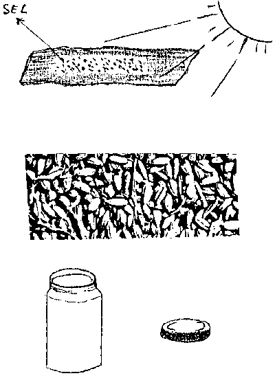 - du sel bien sec (sécher sur tissu propre 2 heures en plein soleil)