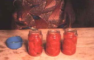 27. Pour bien remplir le bocal, nous ajoutons aussi de la pulpe chaude.