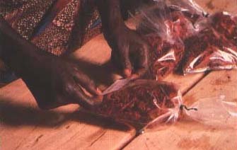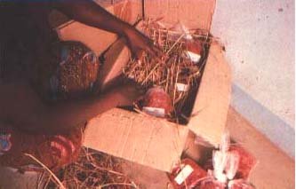 94. Les sachets de tomates séchées sont gardés dans des cartons avec de la paille, pour les protéger de l'humidité.