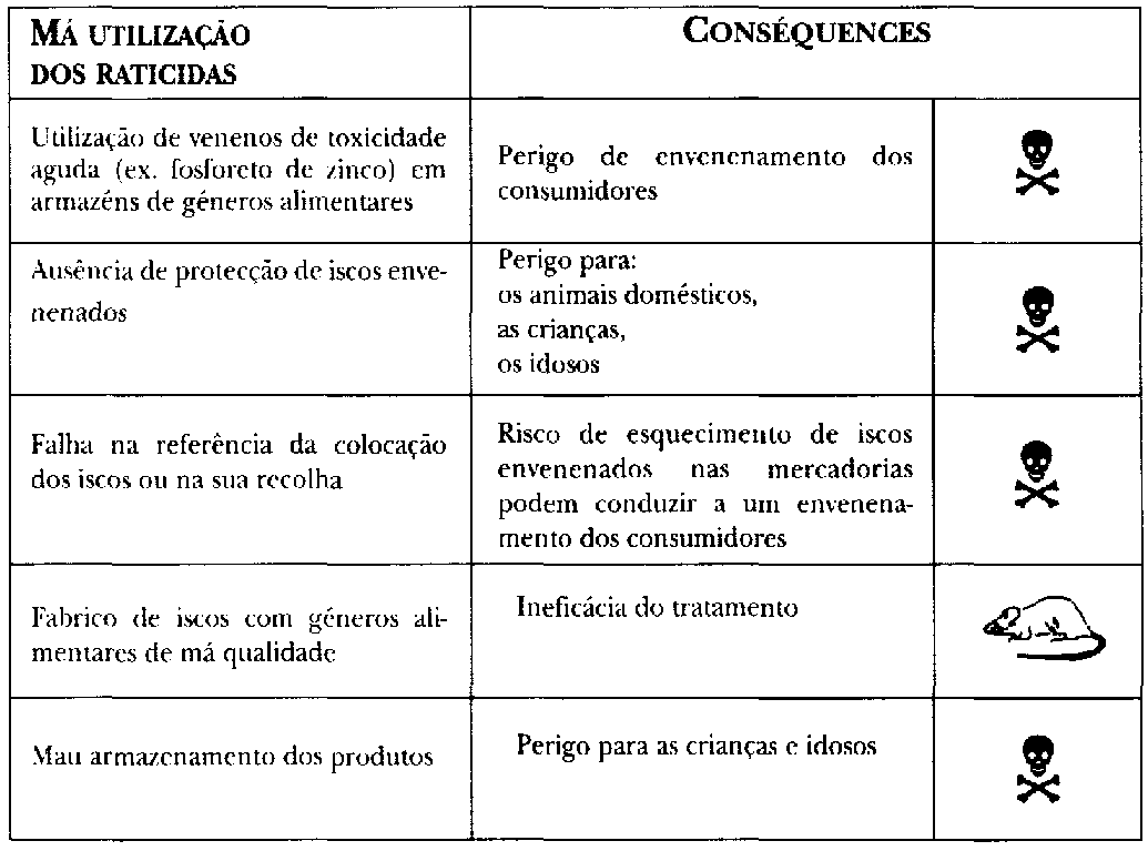 Sao todos venenos perigosos para o homem e para os animáis domésticos. Por isso mesmo, o não respeito pelas regras de segurança, quando da sua utilização pode ter consequências fatais (quadro 5).