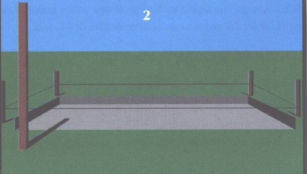 A l'aide de quatre piquets de I mètre de long on délimitera un rectangle droit de 3,5 mètres de long par 1,5 mètre de large. On s'assurera que l'une des longueurs soit orientée vers le sud en suivant les recommandations du chapitre sur l'orientation du séchoir. Une corde sera tendue et mise à niveau entre chaque piquet. En travaillant à l'intérieur du rectangle on creusera un trou d'au moins 20cm de profond. La base du trou devra être de niveau dans tous les axes. (dessin 2)