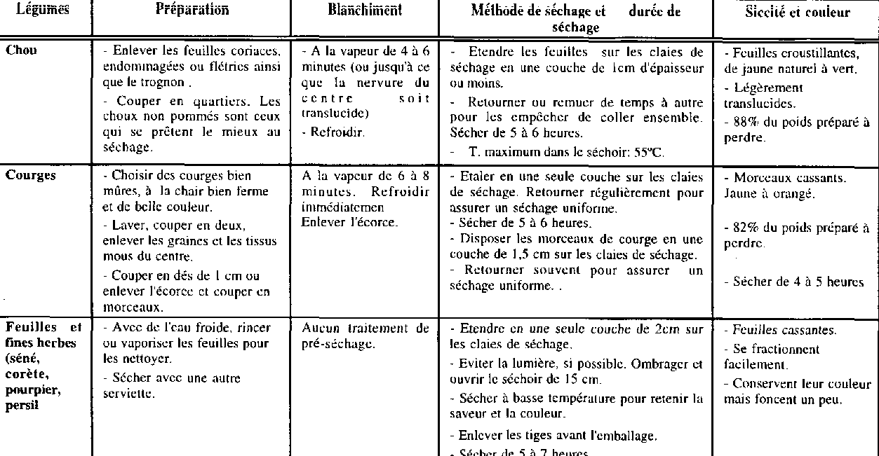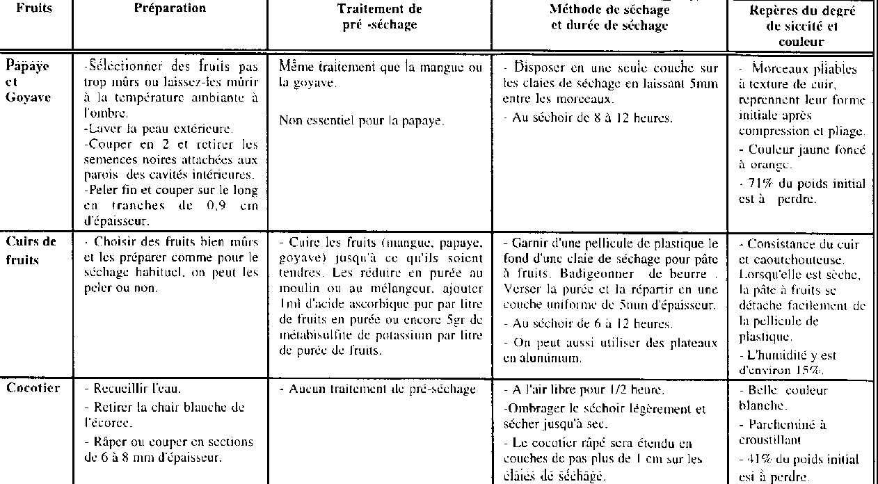 TABLEAU I GUIDE SUCCINT POUR LA PREPARATION ET LA DESHYDRATATION DES FRUITS Partie 2