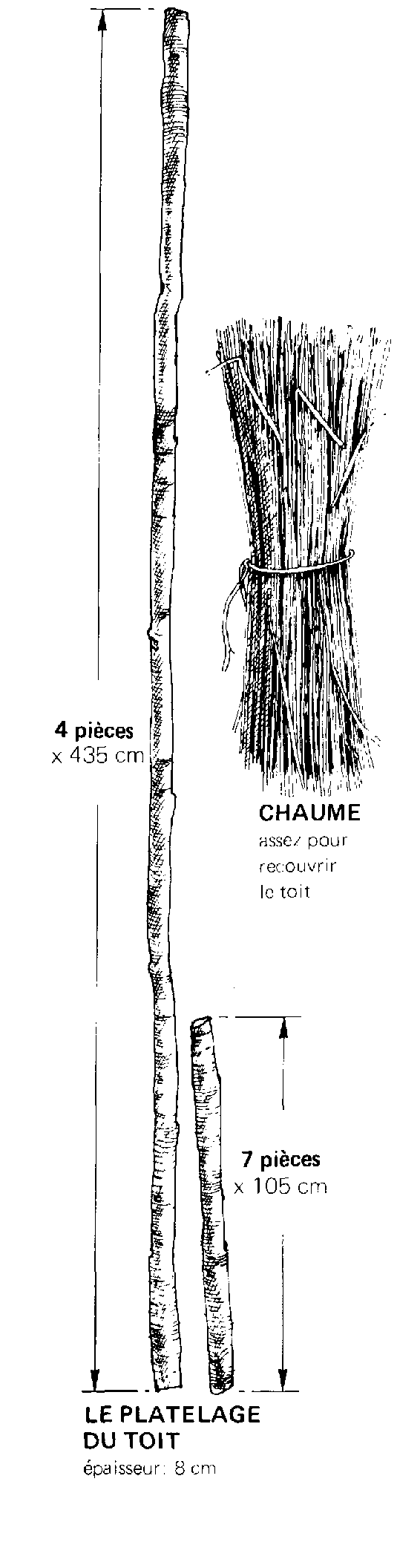 Un bon toit de chaume est la couverture idéale. Si vous le souhaitez,faîtes le toit avec des tôles d'acier galvanisé. Dans ce cas il faut 4 tôles de 2 m de longueur pour un grenier norma I.