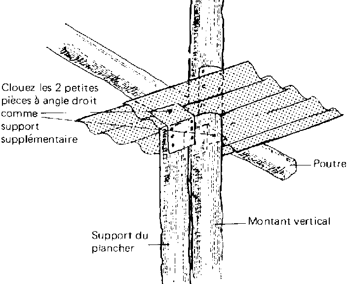 Coincez ces soutiens entre la paroi de tiges et les poutres du plancher d'une part et celles de la charpente d'autre part. Ils assurent la rigidité des murs du grenier.