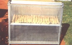 Las bandejas son trasladadas a un secador mecánico de calentamiento indirecto, donde se procede a secarlas por varias horas. Cuando las condiciones lo permitan se pueden secar en un secador solar o convectivo usando una fuente de calor externa y un ventilador externo.