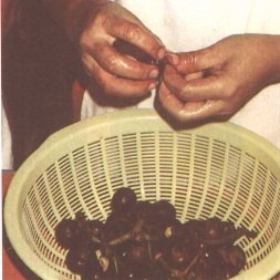Separación de la pulpa de las semillas con tijeras (G. Paltrinieri)