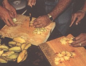 Trozado de piña antes del despulpado (G. Paltrinieri)