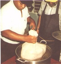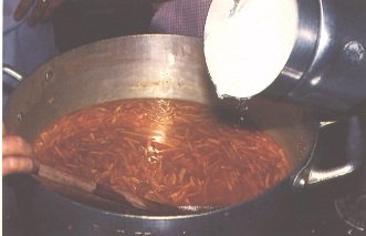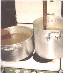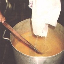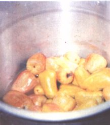 Calentamiento de la pulpa de papaya antes de agregar la pulpa de piña (G. Paltrinieri)