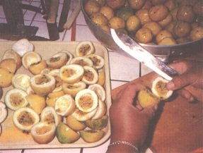 Frutos con cortes para facilitar el intercambio osmótico (G. Paltrinieri)