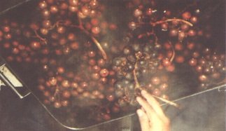Escaldado de los racimos en agua hirviendo (G. Paltrinieri)