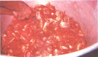 Pulpa con agua y azúcar para la separación de las semillas (G. Paltrinieri)