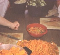 Corte de zanahorias (izq.); y limón (der.) trozado listo para la mezcla (G. Paltrinieri)