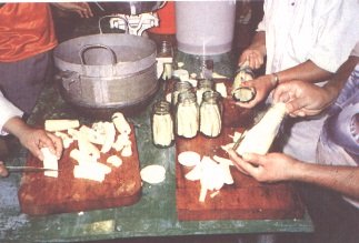 Corte de la pulpa pelada en trozos (G. Paltrinieri)