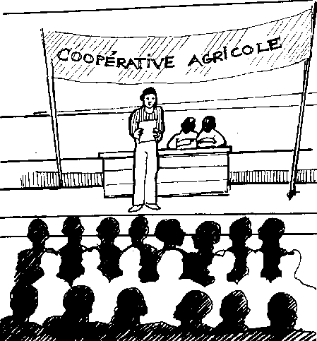 | Organiser des discussions de groupe sur les aventages d'une meilleure commercialisation, des conférences des séminaires, des réunions d'agriculteurs et de commerçants. | Contribution éventuelle des stagiaires aux frais. | |