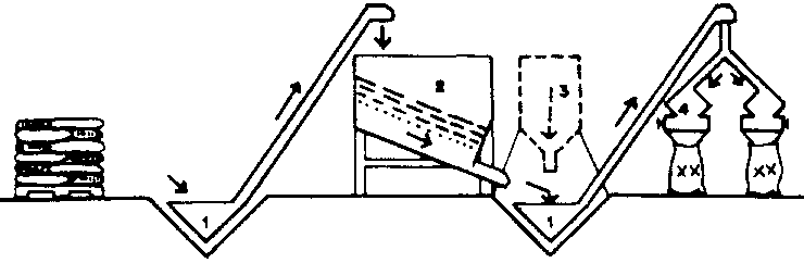 En tal caso, hay que disponer de una unidad de reacondicionamiento de los granos constituida por dos tornillos de alimentación con tolva de entrada, una limpiadora-separadora, un aparato para el tratamiento contra insectos, una pesadora-ensacadora y una cosedura de sacos.