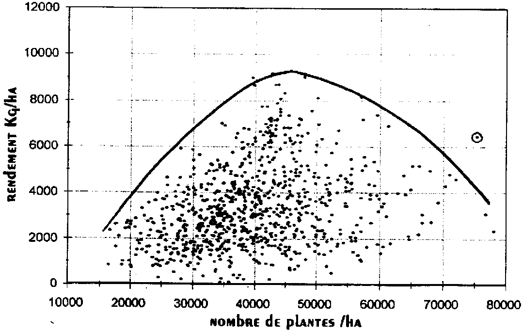Des études, qui portaient plus précisément sur la compréhension de l'installation de la population, font ressortir que seulement 17 % des exploitants se situent dans les normes recommandées (50 000 à 62 500 plantes/ha), tandis que 30 % ont une densité inférieure à 30 000 plants/ha, c'est à dire une situation où la densité devient fortement limitante.