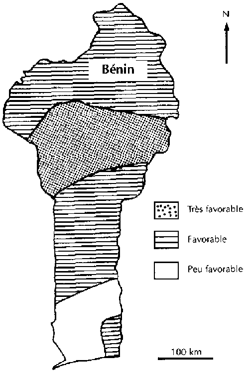 Les superficies ont aussi connu une fluctuation au cours des sept dernières années. Dans les départements de l'Atacora et du Borgou, on constate une nette augmentation des superficies, de 13 858 ha en 1985 à 26 789 ha en 1991 dans l'Atacora (+ 51 %) et de 41 419 ha en 1985 à 71 414 ha en 1991 dans le Borgou (+ 58 %).