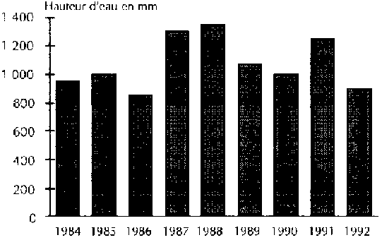 Figure 1 Pluviométrie moyenne annuelle dans l'Atlantique de 1984 à 1992.