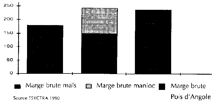 Figure 3. Marge brute cumulée des systèmes «maïs»,«manioc», et «pois d'Angole».