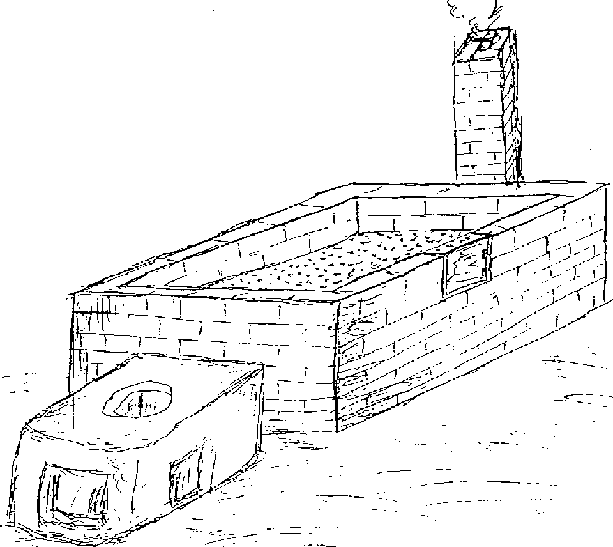 One important and new feature of this dryer is that it has been designed to be fitted within the farmer's existing kitchen. Thus, instead of cooking over three large stones, as is traditionally the case, a more energy-efficient fireplace can be used for cooking while the crop is drying. Therefore, significant savings are made as there is no need to construct a separate shed to house the dryer.