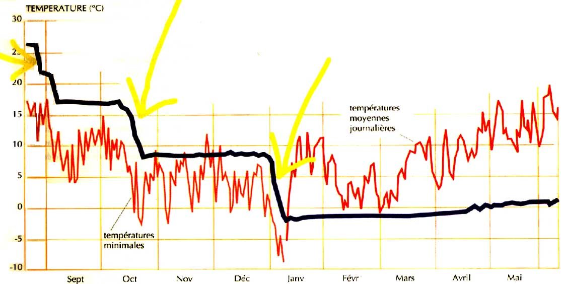 A la suite du second palier, régler le thermostat sur 5°C Le refroidissement complet et définitif sera réalisé entre l'automne et l'hiver. Ensuite, il n'y a plus lieu de ventiler puisque l'air va avoir tendance à devenir plus chaud que le grain.