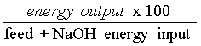 Therefore, the treatment of straw increased weight gain by 70.0 - 55.5 = 14.5 kg/1,000 kg straw. (This figure is conservative, because a calf fed treated straw consumed slightly less oilcake/1,000 kg straw than the one fed untreated straw.) The energy value of this bodyweight gain is taken as 9.6 MJ/kg (calves about 1-year-old gaining at a rate of 0.40 kg/day[19]), or 139.2 MJ for 14.5 kg. The manufacturing energy cost of NaOH is estimated to be 51 MJ/kg;