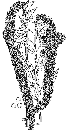 The seedheads, some as long as 50 cm, resemble those of sorghum. The seeds, although barely bigger than a mustard seed (0.9-1.7 mm in diameter), occur in massive numbers-sometimes more than 50,000 to a plant-and are cream colored, golden, or pink.