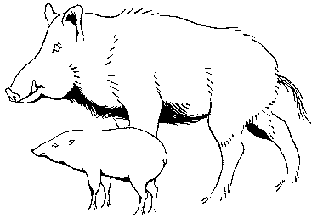 boar Sus scrofa) and pigmy hog drawn to the same scale. (W.L.R.