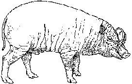 The Javan warty pig (Sus verrucosus) apparently has never been domesticated, but it has been a resource for hunting peoples for centuries. Now, however, the human population in its native region is predominantly Moslem, and all pigs are widely regarded as agricultural pests. Increasing numbers of them are poisoned each year.