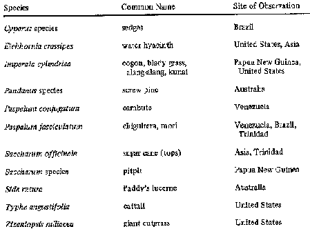 Cunha, E., Alvarez, F., Larez, O., and Bryan, W. B. 1975. Pasture and Livestock Investigations in the Humid Tropics: Orinoco Delta, Venezuela. 4. Beef Cattle and Water Buffalo Grazing Trials with Native and Introduced Grasses. IRI Research Institute, New York, New York, USA.