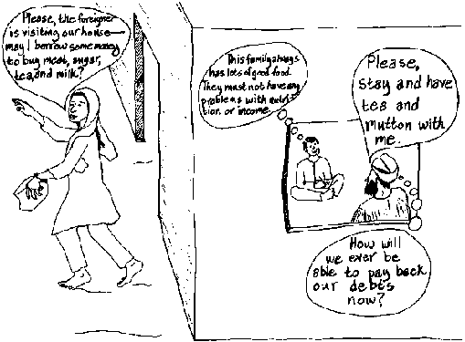 Eating with a household gives insights into what they eat, how food is prepared, and how it is distributed. However, the field worker is often considered an honored guest and, at least the first few times, larger quantities and more special foods may be served (Figure 4.5). These are unusual circumstances and should not be used in an assessment. In addition, the field worker must be careful not to overburden the household which may feel obliged to provide these special meals.