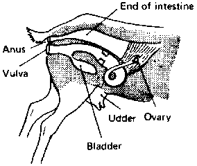 Usually the birth takes place without difficulty; there is nothing for the farmer to do, except in the case of a female which is giving birth for the first time.