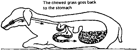 When the grass is well chewed, they swallow it again; but this time the grass does not go into the first stomach, but into the other parts of the stomach.