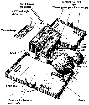To protect the animals from the wind, build a wall of earth up to the roof on the side where the wind usually blows.