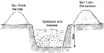 Fill the holes with compost and manure (see Booklet No. 6. pages 5 - 7).