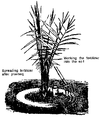 After you have spread the fertilizer, cover it with a little earth. If there is a mulch around the seedlings, remove the mulch before applying the fertilizer. Afterwards spread a fresh mulch of dry herbage.