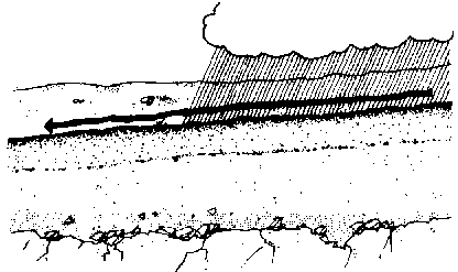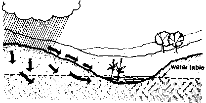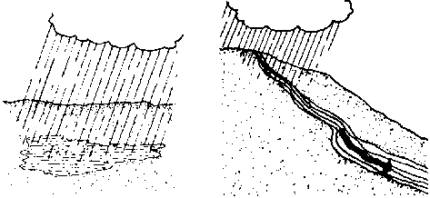18. Water which stays on the surface will either lie in one place, if the land is flat, or it will run along the surface, if the land is hilly.