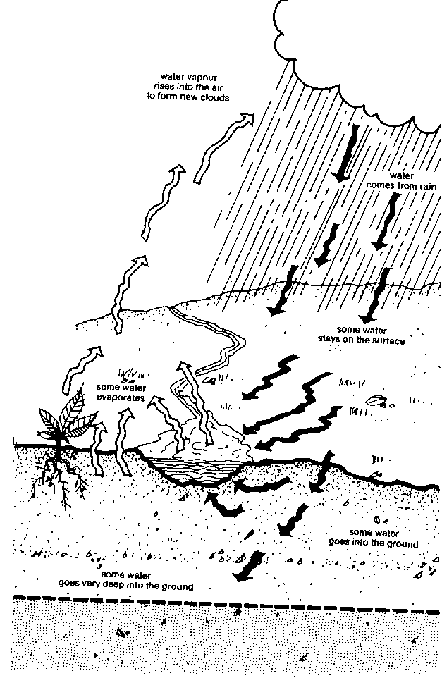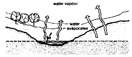 20. At certain times water evaporates from the surface of the soil or from swamps, lakes or streams. It becomes water vapour.