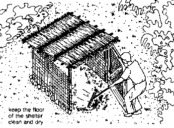 172. Keep the floor of their shelter as clean and as dry as you can. Change the floor material if it becomes wet, dirty or mouldy.